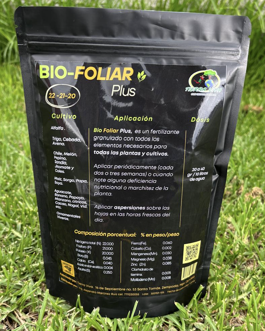 Bio Foliar Plus, es un fertilizante granulado de alta eficiencia, formulado con todos los nutrientes esenciales que los cultivos y plantas necesitan para alcanzar su máximo potencial. Su composición balanceada de macro y micronutrientes garantiza una nutrición vegetal completa, promoviendo un desarrollo vigoroso, mayor resistencia a condiciones adversas y un rendimiento superior en cada cosecha.